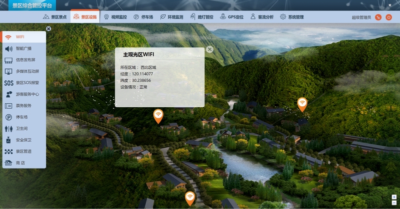 景區(qū)一體化綜合管控平臺(tái)是基于先進(jìn)理念的GIS地理信息系統(tǒng),在地圖上管理所有資源、控制所有設(shè)備、顯示所有事件,集監(jiān)測(cè)、控制、維護(hù)、安保、應(yīng)急、巡檢和管理功能于一體,實(shí)現(xiàn)對(duì)全景區(qū)的實(shí)時(shí)控制管理。