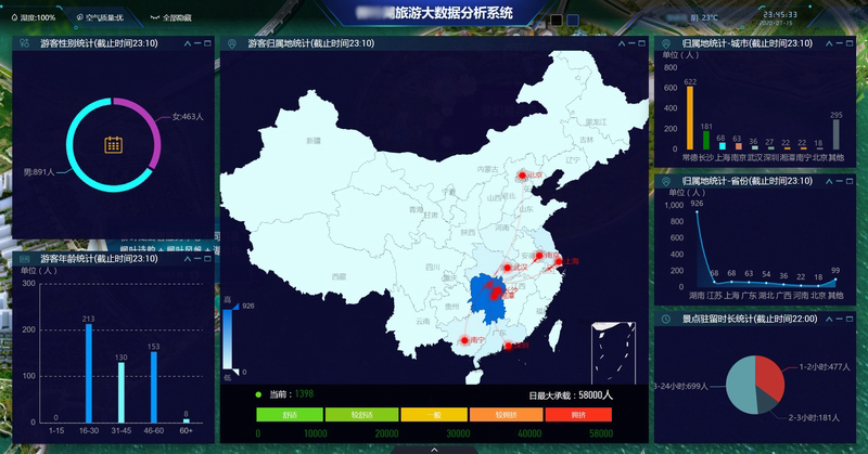 從歸屬地的維度對(duì)客流數(shù)據(jù)進(jìn)行分析統(tǒng)計(jì),對(duì)實(shí)時(shí)客源的實(shí)時(shí)人數(shù)統(tǒng)計(jì),數(shù)據(jù)以歸屬地來(lái)進(jìn)行分配,對(duì)客源的人數(shù)分布的一個(gè)直觀感受。