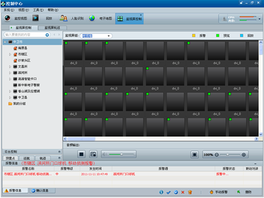 4) 監(jiān)視屏控制界面與電視墻上可同步顯示視頻;