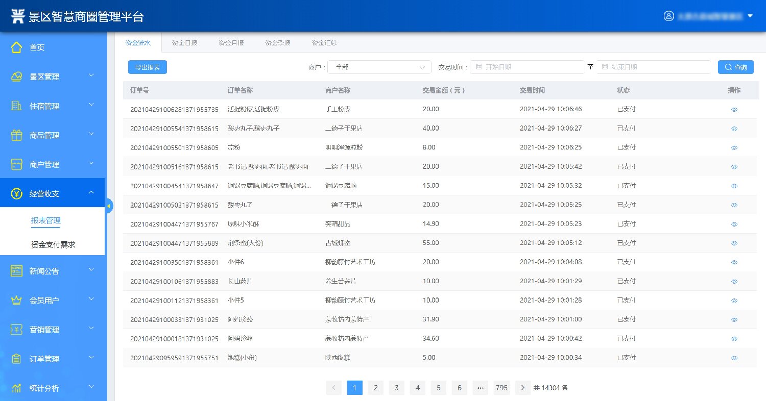 3.經(jīng)營收支管理:系統(tǒng)實現(xiàn)對商戶的嚴(yán)格監(jiān)管,杜絕出現(xiàn)私下收賬的現(xiàn)象;能夠與銀聯(lián)、支付寶、微信等主流支付系統(tǒng)無縫對接,且能夠?qū)訃鴥?nèi)所有主流銀行帳戶;系統(tǒng)具備資金日報功能,對于每日收入的款項能夠接收入分類、歸入賬戶等出具匯總表,同時具備分類明細(xì)表,作為核算、對帳依據(jù);資金日報功能,對于每日收入的款項能夠按收入分類、歸入賬戶等出具匯總表,同時具備分類明細(xì)表,作為核算、對帳依據(jù);資金管理輔助,動態(tài)反映未來一個時間段內(nèi)的資金支付需求,以便公司明確閑置資金額度,以提高資金使用效率;能夠便捷的實現(xiàn)對商戶的收入分成劃撥。