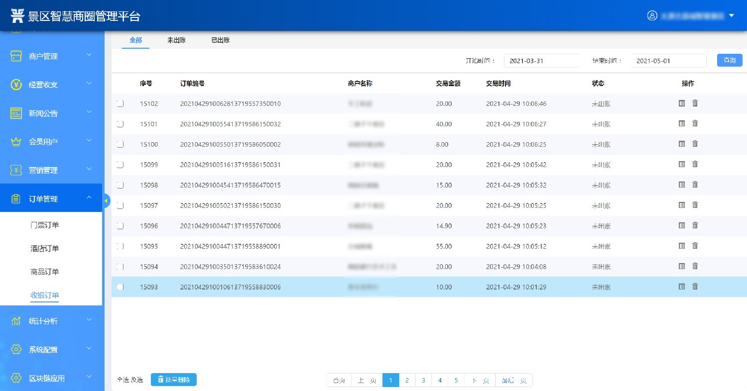 1.訂單數(shù)據(jù)管理:系統(tǒng)后臺維護(hù)管理景區(qū)內(nèi)的門票訂單、酒店訂單、商品訂單等,可查詢未付款、已付款、已預(yù)訂和已退款等數(shù)據(jù)。