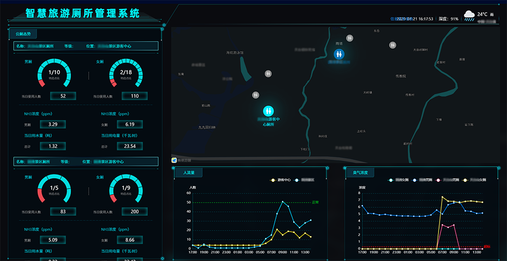 智能廁所系統(tǒng)基于4G、WIFI等無(wú)線通信技術(shù),通過(guò)智能網(wǎng)關(guān)、無(wú)線設(shè)備,無(wú)線采集設(shè)備無(wú)線連接及控制設(shè)備,搭載相應(yīng)的設(shè)備,如顯示屏、攝像頭、溫濕度傳感器、氣體傳感器一鍵告警、智慧照明等數(shù)據(jù)傳至云平臺(tái),創(chuàng)建公廁管理數(shù)據(jù)庫(kù),實(shí)現(xiàn)公廁環(huán)境、能耗、運(yùn)維等方面的實(shí)時(shí)監(jiān)管平臺(tái),為實(shí)現(xiàn)公廁的智能化應(yīng)用管理提供數(shù)據(jù)支撐。