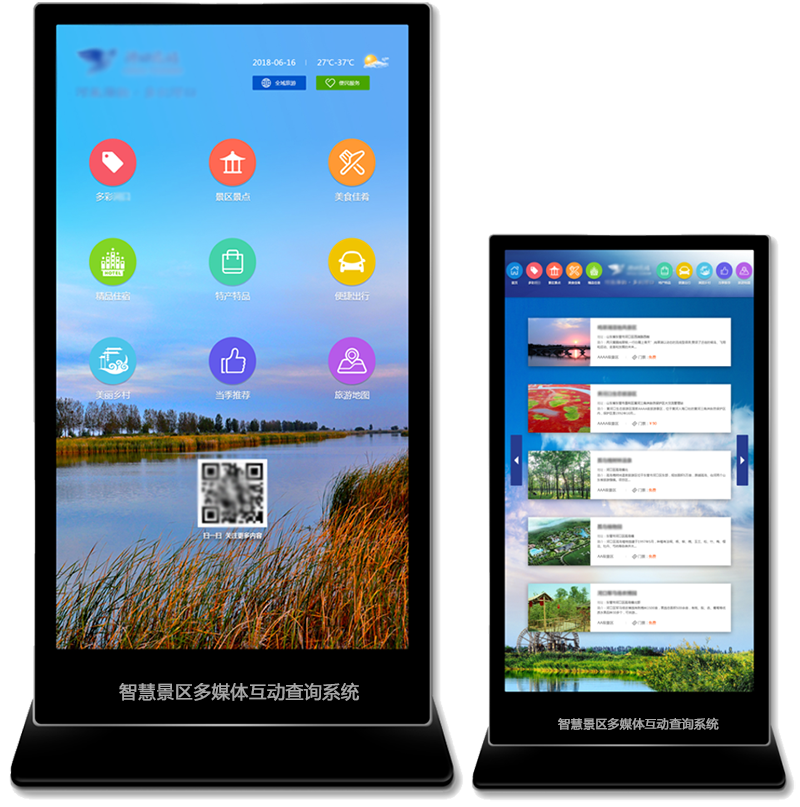 多媒體互動查詢屏是智慧景區(qū)的重要組成部分。利用云計算、物聯(lián)網(wǎng)、互聯(lián)網(wǎng)等新技術,通過寬帶網(wǎng)絡接入,借助多媒體觸摸屏終端互聯(lián)設備,結(jié)合現(xiàn)有的景區(qū)、酒店及機場、車站等公共場所,打造一個游客旅游環(huán)節(jié)中舒適、“智慧”的休憩場所。
