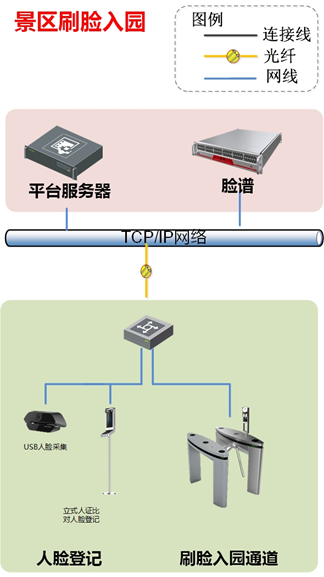 在景區(qū)出入口(檢票口)設(shè)置景區(qū)二次入園、刷臉入園、本地游客入園等專用通道,并在景區(qū)出口相關(guān)位置設(shè)置人臉登記臺。游客進(jìn)入時(shí)通過刷臉實(shí)現(xiàn)自動放行,刷臉入園專用通道設(shè)置時(shí),需考慮通道寬度等問題。一般情況下,可選用三輥閘設(shè)備,也可根據(jù)情況選擇翼閘或擺閘。