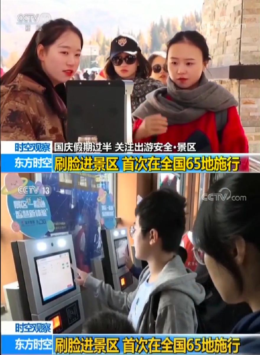 游客刷臉注冊購票后,入園時無須出示門票與身份證,人臉識別閘機可自動對游客臉部進行掃描確認,只需1秒便可快速進入景區(qū)。”十一期間,CCTV13《東方時空》《24小時》《朝聞天下》《新聞30分》《共同關(guān)注》《新聞直播間》,CCTV2《經(jīng)濟信息聯(lián)播》《第一時間》、CCTV4《中國新聞》共9檔央視名牌欄目集中報道——今年十一黃金周,國內(nèi)65家知名景區(qū)已開啟“刷臉入園”模式。值得一提的是,這套在全國景區(qū)首次大范圍應(yīng)用的刷臉入園系統(tǒng),出自Aibee和深大智能聯(lián)合首創(chuàng)的全域旅游AI升級方案,方案問世僅半年,已迅速展露“規(guī)模效應(yīng)”。