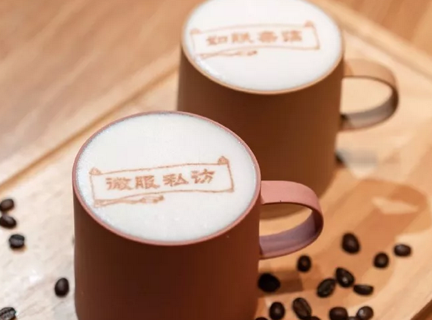 角樓咖啡有著鮮明的故宮特色。比如,以《千里江山圖》為主要的裝修元素,飲品的名字叫“康熙最愛巧克力”“三千佳麗奶茶”“養(yǎng)心咖啡”“佛手香茗”等等,連咖啡上的印花都是“御駕親征”“微服私訪”“朕心甚累”“母儀天下”“眾卿平身”“如朕親臨”等獨具宮廷特色的詞語。咖啡館內(nèi)還有一個專門的文創(chuàng)產(chǎn)品展區(qū),可以買到《千里江山圖》的扇子、宮藏文物為封面的筆記本、故宮日歷等文創(chuàng)產(chǎn)品。當(dāng)然,咖啡館里也有適應(yīng)博物館文物保護(hù)的一些特殊規(guī)則,比如為了防火,店內(nèi)不能給手機充電。