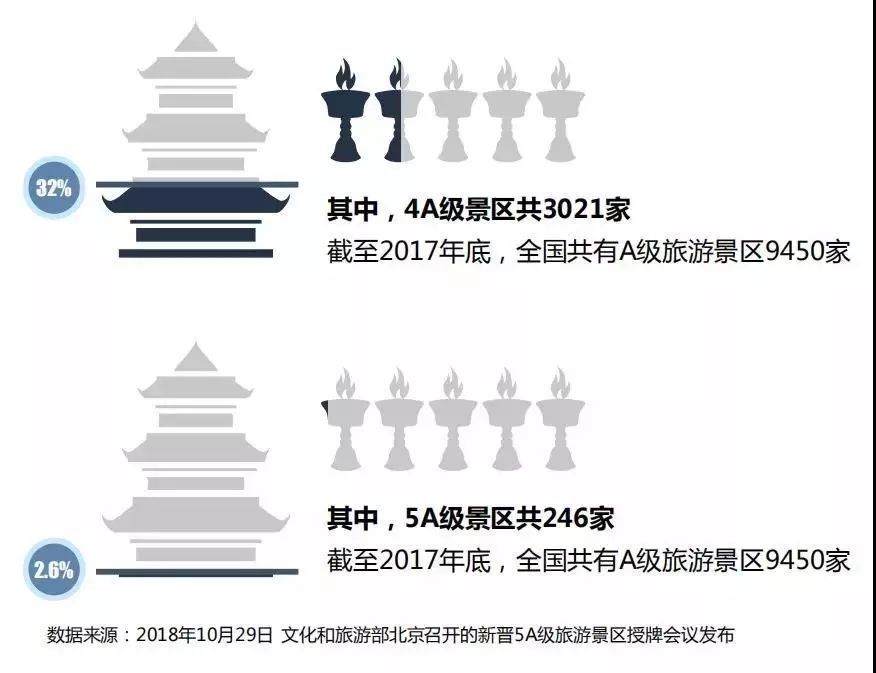 根據(jù)文化和旅游部在2018年第四季度例行新聞發(fā)布會(戳此查看)內(nèi)容,截至10月,各地已有981個景區(qū)實(shí)施免費(fèi)開放或降價措施(免費(fèi)開放74個,降價907個),其中5A級景區(qū)159個,4A級景區(qū)534個。另外,驢媽媽旅游網(wǎng)創(chuàng)始人洪清華曾說過80%的景區(qū)不賺錢,可見,隨著消費(fèi)升級,傳統(tǒng)景區(qū)轉(zhuǎn)型升級迫在眉睫。