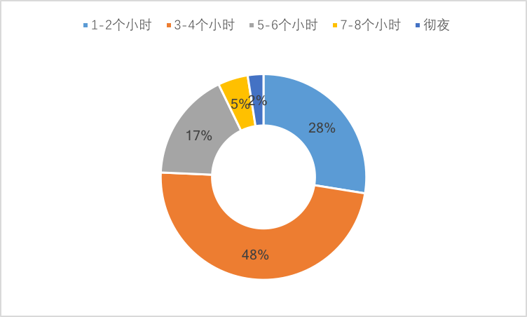 專項調(diào)查數(shù)據(jù)顯示,夜間6-10點為夜間旅游的高峰時段,占比達到77%;11-12點%及12點以后夜間旅游占比23%。從夜游體驗時長來看,愿意體驗3-4小時的游客最多,占比為48.1%,體驗1-2小時的比重為27.5%,體驗5-6小時的比重為17.1%,體驗7小時以上占比7.2%。