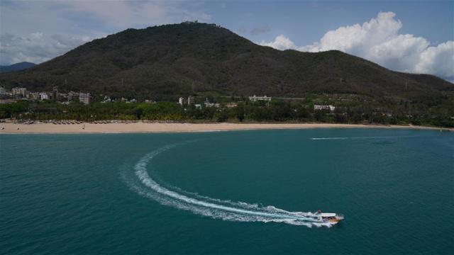 在海南省三亞市天涯海角旅游景區(qū),游客乘坐游船參觀游覽(4月13日攝)。 新華社記者 李夢嬌 攝
