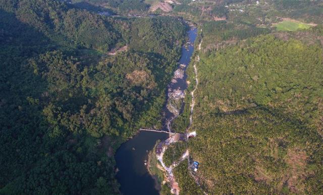海南省瓊中黎族苗族自治縣瓊中峽漂流區(qū)(4月11日無人機(jī)拍攝)。 新華社記者 楊冠宇 攝