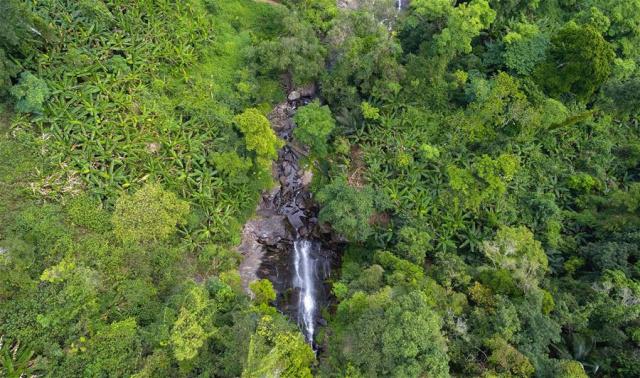 海南省瓊中黎族苗族自治縣百花嶺雨林文化旅游區(qū)內(nèi)的瀑布(4月12日無人機(jī)拍攝)。 新華社記者 楊冠宇 攝