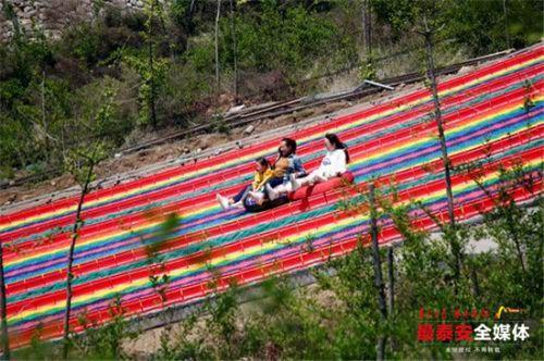 為迎合年輕游客," 五一 " 前期,上豹峪村新規(guī)劃設計的七色旱滑、滑索、山谷漂流等娛樂項目正式投入使用,讓游客在鄉(xiāng)間山谷感受到別樣的刺激和趣味,受到了游客的追捧,更增加了鄉(xiāng)村游的樂趣性。" 五一假期期間,我們每天接待游客量達七八千人。以山谷漂流這個娛樂項目來說,客流高峰期幾乎每分鐘一艘船。而這并不是我們這里人氣最旺的時候,就在一個月前桃花節(jié)那幾天,這里更是人山人海,來賞花的、游玩的人擠都擠不動。" 上豹峪村黨支部書記劉紹林驕傲地說。