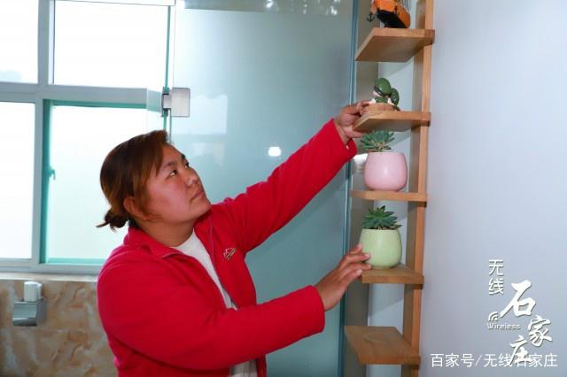 李紅霞在整理民宿房間內(nèi)的多肉綠植