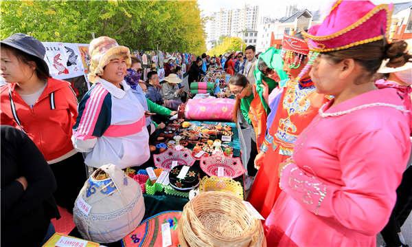 華麗的民族服飾,既能欣賞又能體驗,令在場游客們紛紛對博湖刺繡藝術之美夸贊不已,一些觀眾還興致勃勃地試穿刺繡蒙古族袍,用相機、手機定格下美好的瞬間。