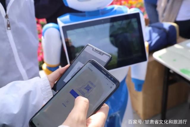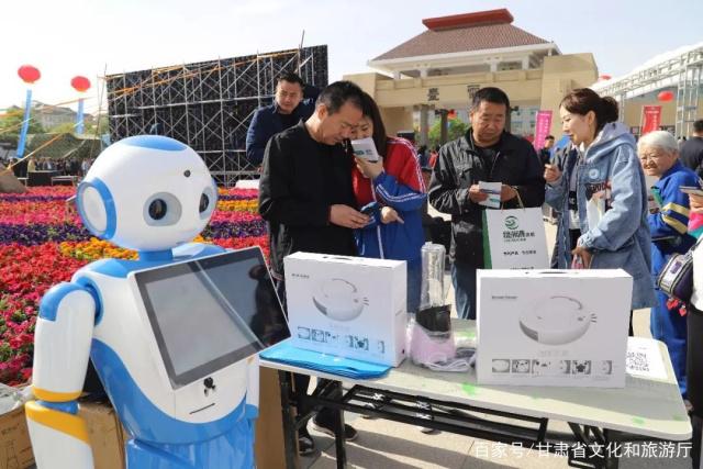活動現(xiàn)場,省文旅廳的展覽區(qū)前人頭攢動、氛圍熱烈火爆。代表甘肅文化旅游的兩臺智能機器人熱情地忙碌著,不斷和前來參觀的市民互動交流,并播放一機游宣傳視頻,向大家講解甘肅各大景區(qū)的基本情況等等。