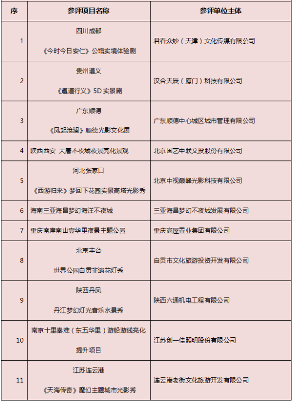 “最佳文旅融合夜游創(chuàng)意獎(jiǎng)”名單如下