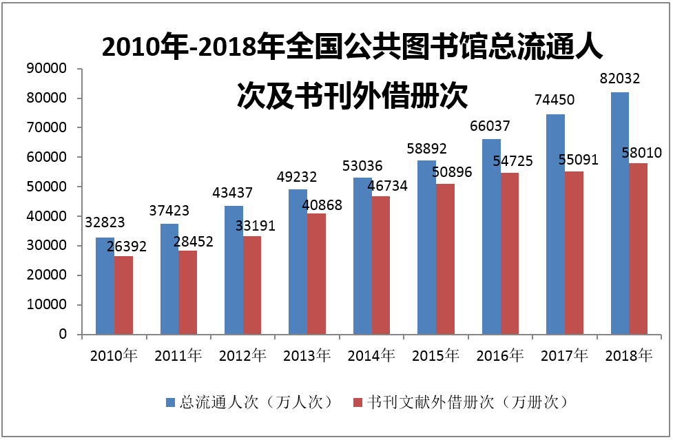 全年全國公共圖書館發(fā)放借書證7263萬個,比上年增長7.8%;總流通人次82032萬,增長10.2%。書刊文獻(xiàn)外借冊次58010萬,比上年增長5.3%;外借人次25814萬,比上年增長1.2%。全年共為讀者舉辦各種活動179043次,比上年增長15.1%;參加人次10648萬,比上年增長20.2%。