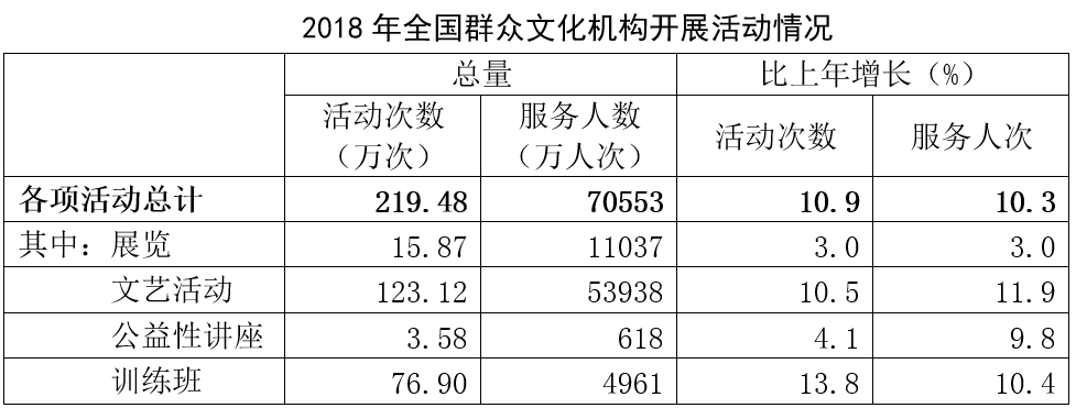 文化和旅游部2018年文化和旅游發(fā)展統(tǒng)計公報發(fā)布(附全文)