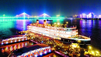 市民游客登上知音號觀賞“長江燈光秀”