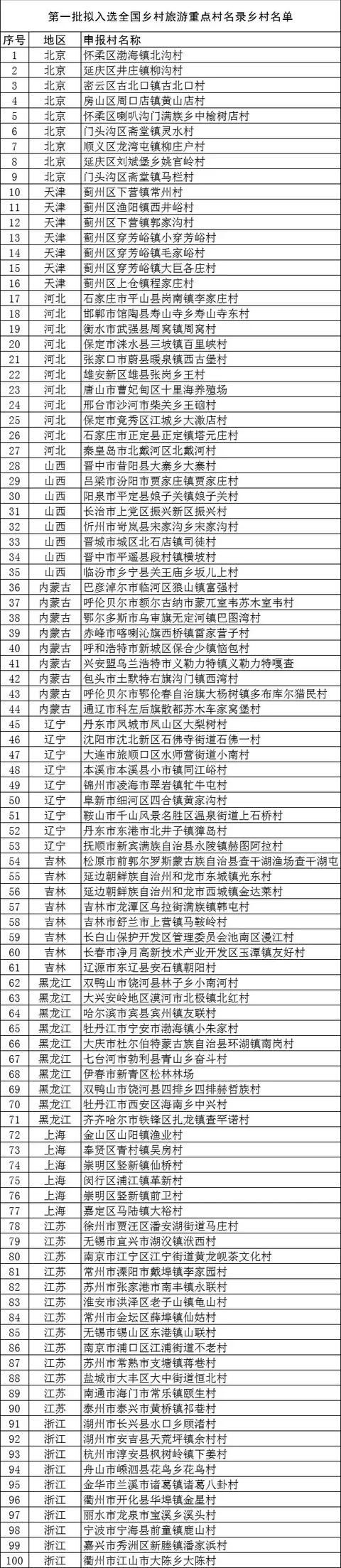 附:第一批擬入選全國鄉(xiāng)村旅游重點村名錄鄉(xiāng)村名單