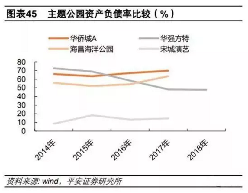 值得注意的是,隨著華強(qiáng)方特轉(zhuǎn)向輕資產(chǎn)輸出的路徑,公司資產(chǎn)負(fù)債率逐年下降。這是目前幾乎所有主題公園品牌都在轉(zhuǎn)型的方向。海昌海洋公園輕資產(chǎn)戰(zhàn)略起步較晚,又新開了兩個(gè)重資產(chǎn)項(xiàng)目,導(dǎo)致其凈負(fù)債率從前一年的77.8%驟升至2018年的135.7%。而典型輕資產(chǎn)模式的宋城演藝,剝離六間房后,資產(chǎn)負(fù)債率只有10.43%。