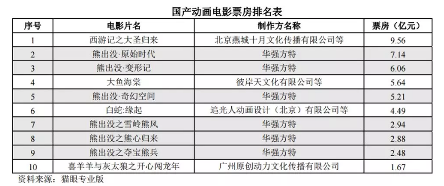此外,讓華強(qiáng)方特十分驕傲的是,截至2019年6月,在國產(chǎn)動畫電影票房榜上,“熊出沒”系列承包了6席,累計(jì)總票房近27億。