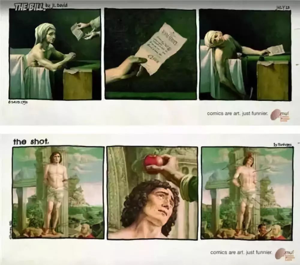 在這一方面,意大利盧卡漫畫博物館,也曾用漫畫的形式,詼諧地演繹了名作背后的“前因后果”。