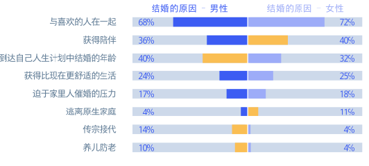 小鎮(zhèn)新青年期望通過自己的社交圈邂逅美好的愛情,但受限于自身社交圈子狹窄,大部分人最終是通過父母介紹、相親的方式找到另一半。新的婚姻觀念開始影響小鎮(zhèn)新青年,例如認(rèn)為與相愛的人共處才是婚姻的真諦、對于父母的催促并不太在意等,尤其在女青年中更為明顯。