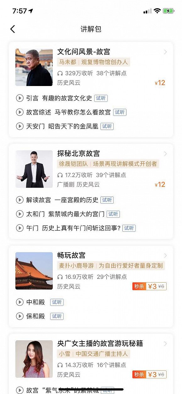 而對于景區(qū)來說,來源更多樣化的語音講解,也是景區(qū)正經(jīng)歷變革的一方面。國內(nèi)景區(qū)的語音導(dǎo)覽,從最早付費聘請導(dǎo)游舉著話筒每天重復(fù)相同內(nèi)容,逐漸變成掃描二維碼聽線上語音,再過渡到從多樣化的解說里挑選自己想聽的,獲取景點背景知識。