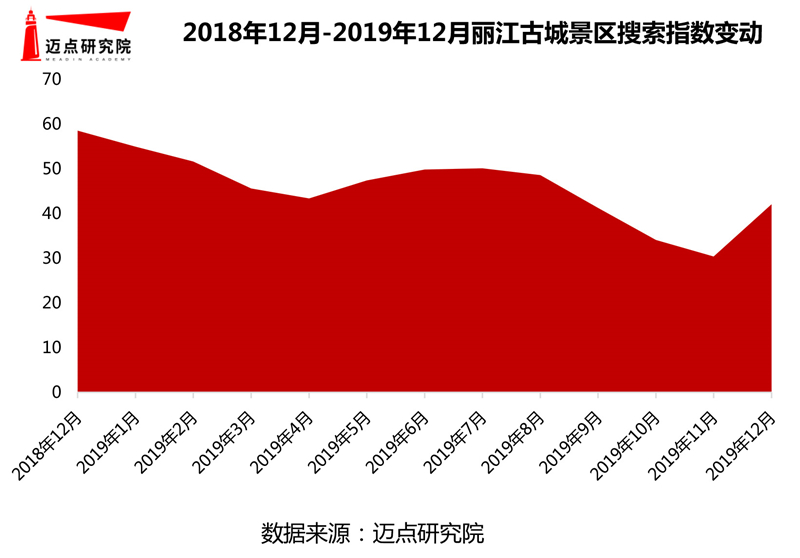 在反映潛在用戶關注的搜索指數上,本月麗江古城景區(qū)表現較為突出。經邁點研究院數據監(jiān)測,12月麗江古城景區(qū)搜索指數高達42.04,環(huán)比增長38.47%,這表明旅游市場中關注該景區(qū)的潛在客群逐漸增多。