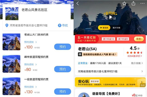 在景區(qū)實行單日最高人數(shù)限制的同時,開通多個旅游預(yù)約通道,游客可通過美團網(wǎng)、攜程網(wǎng)、同程旅游網(wǎng)、去哪兒網(wǎng)及老君山景區(qū)微信公眾號等多平臺實行景區(qū)門票預(yù)約服務(wù),加強客流量智慧監(jiān)控。