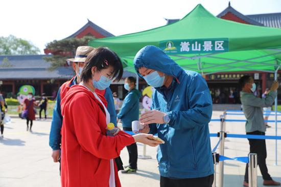 嵩山景區(qū)時(shí)刻將游客的生命安全放在第一位,科學(xué)防控疫情。每天對(duì)游客中心、觀光車、休息區(qū)等旅游接待場(chǎng)所以及基礎(chǔ)設(shè)施實(shí)行一日三次的環(huán)境衛(wèi)生消殺。按照“先掃碼量體溫再入園”的防疫要求,在景區(qū)入園及游客聚集處,設(shè)置多個(gè)游客分流通道,引導(dǎo)游客進(jìn)行健康碼驗(yàn)證,進(jìn)行體溫監(jiān)測(cè)與游客自助刷票入園,快速分散人流,防止游客聚集,加快了游客的進(jìn)園速度。景區(qū)的觀光車施行半數(shù)滿員政策,每輛車承載游客不超過荷載人數(shù)的二分之一。增加各類安全類標(biāo)識(shí)標(biāo)牌1000余個(gè),在游客中心廣場(chǎng)、入口、景點(diǎn)、觀光車乘車點(diǎn)等重點(diǎn)區(qū)域增派工作人員,時(shí)刻提醒游客做好個(gè)人防護(hù),遵守景區(qū)防護(hù)措施,確保游客安全游覽。