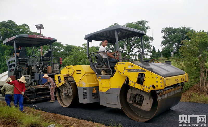 5月28日,在新建區(qū)南磯鄉(xiāng)下院圩濕地公園內(nèi)機(jī)器聲轟鳴,一臺(tái)大型瀝青攤鋪機(jī)正在緊張作業(yè),壓路機(jī)來(lái)回碾壓,一派忙碌的施工景象。