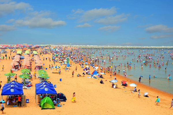 2011年5月,濱海區(qū)在沿海防護堤二期工程5.4公里處開始建設(shè)人工海灘,東西長1600米,南北寬約100多米,沙灘平緩寬闊、沙細灘軟,浪穩(wěn)水清,現(xiàn)在這里成為了濰坊及周邊市民親水近海的首選之地?!皬?014年開始,沙灘管理公司對這個景區(qū)的游樂設(shè)施和對客服務(wù)設(shè)施不斷升級和改造,2017年底通過努力,獲批國家級4A級旅游景區(qū)?!睘H坊歡樂海沙灘副總經(jīng)理王世偉介紹。很多來自濰坊及周邊各地區(qū)游客,周末就自駕來海邊戲水趕海游玩。