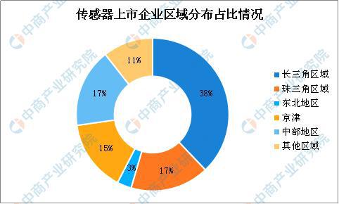 傳感器市場前景廣闊,國內(nèi)企業(yè)紛紛布局其中。目前,我國傳感器上市企業(yè)多達(dá)66家,主要集中在長三角區(qū)域。此外,珠三角區(qū)域、京津地區(qū)、中部地區(qū)分布相當(dāng)。據(jù)統(tǒng)計(jì),長三角區(qū)域傳感器上市企業(yè)占比達(dá)38%,有企業(yè)25家;珠三角區(qū)域占比17%,有企業(yè)11家;中部地區(qū)同樣占比17%,有企業(yè)11家;京津地區(qū)占比15%,有企業(yè)10家;東北地區(qū)占比3%,有企業(yè)2家。