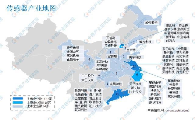 具體來看,長三角區(qū)域傳感器上市企業(yè)主要分布于江蘇、浙江、上海等地,;珠三角區(qū)域即分布于廣東省;中部地區(qū)主要分布于山西、河南、安徽、湖北等地。傳感器上市企業(yè)地圖如下: