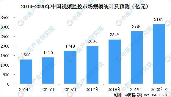 近年來,我國監(jiān)控系統(tǒng)市場經(jīng)歷了持續(xù)強(qiáng)勁的發(fā)展。其中,視頻監(jiān)控市場的發(fā)展速度超過全球其他地區(qū)。據(jù)數(shù)據(jù)統(tǒng)計(jì),2012-2016年我國視頻監(jiān)控行業(yè)增長率均保持在15%以上。2017年,我國視頻監(jiān)控市場規(guī)模突破2000億元。初步估算2019年,中國視頻監(jiān)控市場規(guī)模達(dá)到2790億元。中商產(chǎn)業(yè)研究院預(yù)計(jì),到2020年底,全國視頻監(jiān)控市場規(guī)模將突破3000億元。
