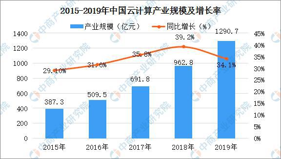目前,中國云計(jì)算市場處于快速發(fā)展階段,容器、微服務(wù)等技術(shù)的不斷成熟,推動著云計(jì)算的變革。隨著云計(jì)算的應(yīng)用場景的不斷拓展,云計(jì)算的應(yīng)用已深入達(dá)到政府、金融、工業(yè)、交通、物流等傳統(tǒng)行業(yè)。當(dāng)前,中國的云計(jì)算市場規(guī)模整體規(guī)模較小,與全球市場規(guī)模仍存在一定的差距。數(shù)據(jù)顯示,2018年全球云計(jì)算市場規(guī)模突破3000億元。伴隨著企業(yè)逐漸傾向于追求數(shù)字化商業(yè)戰(zhàn)略,傳統(tǒng)IT服務(wù)向云端服務(wù)轉(zhuǎn)變,全球云計(jì)算市場規(guī)模將進(jìn)一步增長。在國內(nèi),2019年中國云計(jì)算產(chǎn)業(yè)市場規(guī)模將超1000億元左右。