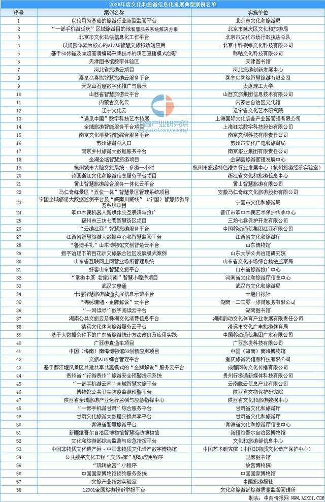 近日,文化和旅游部科技司發(fā)布了《2020年度文化和旅游信息化發(fā)展典型案例名單》,確定“以信用為基礎(chǔ)的旅游行業(yè)新型監(jiān)管平臺”等58個(gè)案例為2020年度文化和旅游信息化發(fā)展典型案例。
