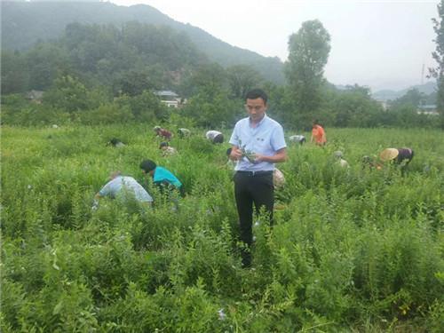 崔躍輝在田間指導(dǎo)村民種植中藥材