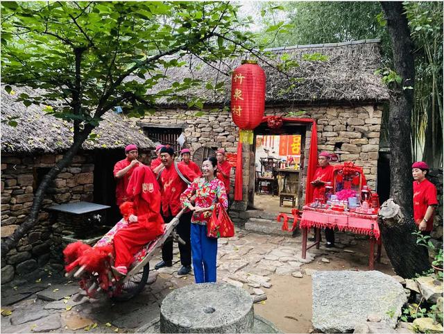 沿著沂蒙生態(tài)大道,驅(qū)車到常山莊。這個(gè)偏遠(yuǎn)的山村被打造為4A級景區(qū),如今被稱作“山村好萊塢”,曾拍攝過《沂蒙》《斗?!贰赌铩返?00余部影視劇,成龍拍攝《鐵道飛虎》的造景也被保留下來。景區(qū)建設(shè)了“中國紅嫂革命紀(jì)念館”、“人民子弟兵將帥紀(jì)念館”、“跟著共產(chǎn)黨走紀(jì)念館”,還參照上世紀(jì)20年代風(fēng)格,建起一座專供影視拍攝的沂州城,以及可接待900名大學(xué)生的“沂蒙紅色寫生基地”。景區(qū)及周圍建起了300多家紅色餐飲、紅色商品、農(nóng)副產(chǎn)品銷售店。2000多名周邊村民,常年從事群眾演員、劇組用工、景區(qū)建設(shè)等工作,2015年,貧困戶全部脫貧,2019年,該村人均可支配性收入達(dá)到1.5萬元。