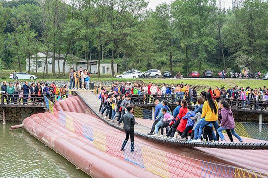 “雙節(jié)”期間,丁李灣景區(qū)的“搖搖橋”成了一座名副其實(shí)的“網(wǎng)紅橋”。在動感音樂伴奏下,橋上的游客玩得不亦樂乎,旁邊的觀眾也被逗得大笑不止。除此之外,古色古香的美景,有趣的民俗非遺展演,更是讓游客贊嘆不已。