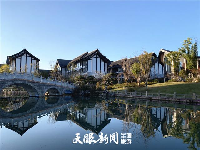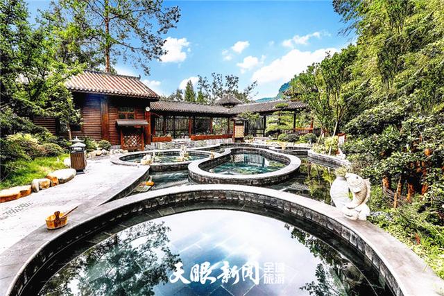 11月中旬,深秋暖陽下的甕安花間池溫泉度假區(qū)一片明媚:綠竹入幽徑,青蘿拂行衣,園林深處,熱氣氤氳。