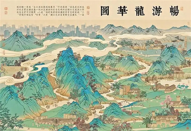 而以“水墨畫”畫風、造型為改造藍本,依照龍華高低錯落的山形、生態(tài)環(huán)境進行創(chuàng)作的手繪地圖,也格外吸引人們的關(guān)注。地圖采取向傳統(tǒng)“借畫”形式,以青綠山水畫為主導,通過下、中、上三部分景致的描繪,展現(xiàn)龍華全域旅游面貌?!跋戮皣@觀瀾古墟、版畫基地、高爾夫球場、鰲湖藝術(shù)村等景點作畫;中景描繪陽臺山、大浪時尚小鎮(zhèn)等景點,運用蒙太奇手法,以觀瀾河為分界線,區(qū)分下景與中景;上景則呈現(xiàn)深圳北站、高鐵以及整個龍華都市剪影。”負責推進龍華手繪地圖項目的負責人、藝術(shù)家蘇云龍介紹道,手繪地圖表現(xiàn)出龍華原始生態(tài)、歷史人文以及都市核心層層遞進的關(guān)系,以傳統(tǒng)文化與現(xiàn)代建筑的對比形成視覺沖擊,達到“遠觀有畫,近看有景”的效果。