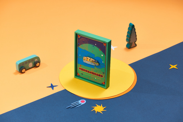 外包裝印著恐龍圖案,有著鮮明清新的色彩,里面其實(shí)是漢堡包;橙紅底色上的螃蟹,馱著老字號(hào)中文招牌;淡綠色紅耳龜 " 何小涌 ",龜殼是菠蘿包、杏仁餅;白底藍(lán)字街牌、深綠色垃圾桶模型,對(duì)應(yīng)的是澳門(mén)日常物件。