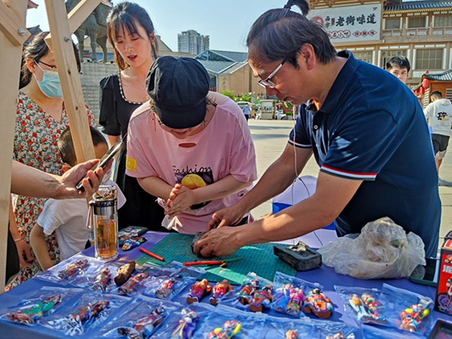一個是面塑作品,一個是版畫藝術(shù);一位是非遺傳承人,一位是21歲的在校大學(xué)生。不久前,在陜西西安大唐市金市廣場上的西安市非遺項目文創(chuàng)研發(fā)展示活動現(xiàn)場,一位來自西安美術(shù)學(xué)院多位學(xué)子的作美術(shù)作品受到廣大市民和游客的關(guān)注。所有作品不僅展示了青年畫家對于非遺的觀察和理解,同樣成為傳統(tǒng)手藝的當代宣傳畫,頗具觀賞性及廣告價值。