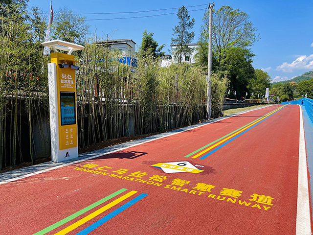 整條賽道全長43公里,途經(jīng)20多個村寨,沿錦江河鋪設(shè),終點(diǎn)訖于江口兩河口河岸。沿途每5公里配置一個芯片數(shù)據(jù)采集點(diǎn),可通過人臉識別和芯片識別兩種方式自動記錄運(yùn)動成績,同時配置陪跑燈光、自動感應(yīng)淋浴系統(tǒng)、智慧AED救援站、智能心率柱、智能存包柜等設(shè)備設(shè)施,實(shí)現(xiàn)科技和生態(tài)、體育和旅游的完美交融,讓廣大運(yùn)動愛好者樂在其中,獲得更多的參與感和體驗(yàn)感······