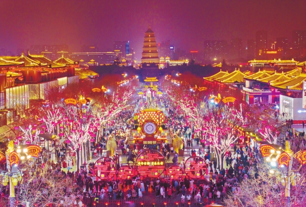大唐不夜城有多火?今年春節(jié)期間,因客流、車流飽和,街區(qū)不得不取消或調(diào)整街區(qū)演出時(shí)間,將演出場(chǎng)地“省下來”給游客。春節(jié)假期街區(qū)日均游客量達(dá)65萬人次。
