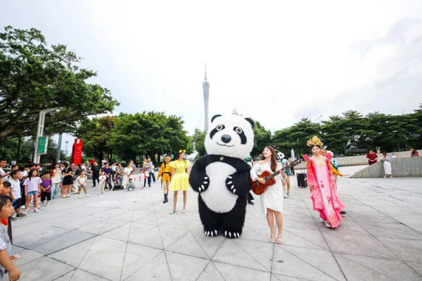 在五天的時間里,主題為“錦官花語·愛行成都”的情景劇快閃演出在五座城市的城市地標(biāo)處掀起熱潮,吸引當(dāng)?shù)厥忻裼慰婉v足關(guān)注。鄭州記憶·油化廠創(chuàng)意園內(nèi)、蘭州中山橋橋頭、南京百家湖摩天輪下、武漢江漢路步行街街頭、廣州大劇院廣場上,一場場創(chuàng)意十足的成都文旅推介活動,通過精心編排的情景劇,開啟一段段跨越時間與空間的奇幻旅程。