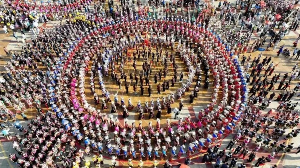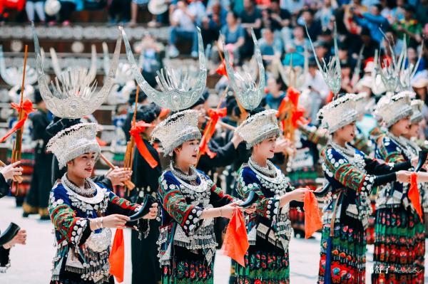 以西江千戶苗寨景區(qū)姑媽籃球場為核心,組織開展苗族敬酒歌、游方對唱、偷親表演、蘆笙演奏、團結(jié)舞等節(jié)目,向游客展示西江千戶苗寨獨有的民族歌舞展演和民風民俗,讓游客深入體驗苗族的民族風情。